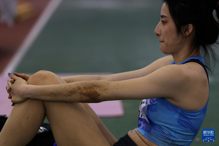 3月28日,安徽隊選手陳婷在比賽中恭候試跳,她贏得第四名。